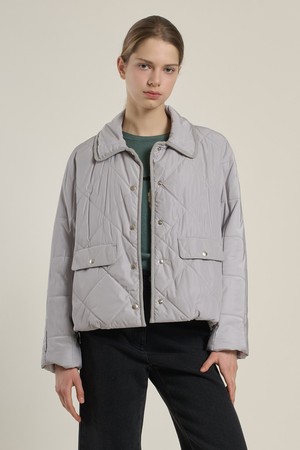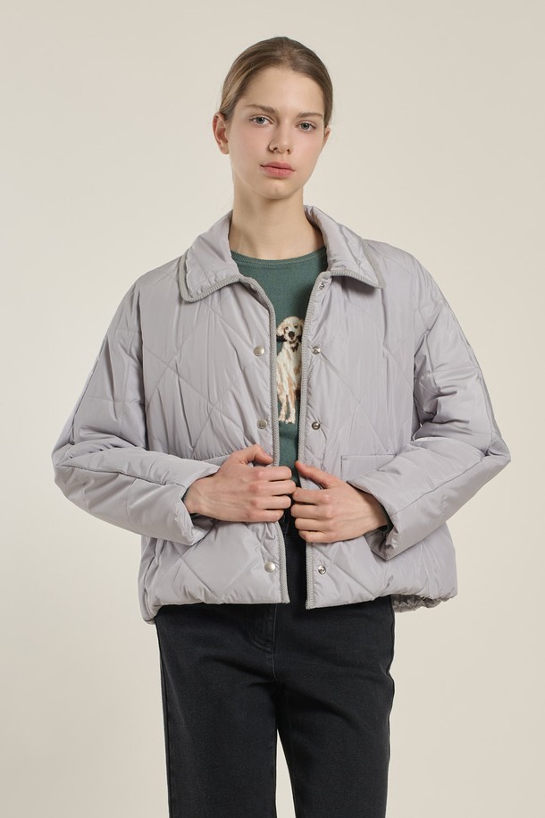[26SP] 다이아 퀼팅 드로우스트링 패딩 점퍼 - LIGHT GRAY B6A1R15715
