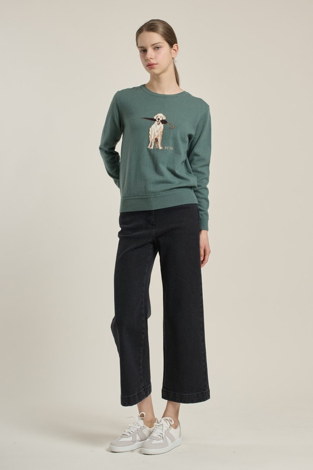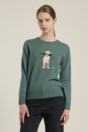 [26SP] 우산강아지 원포인트 니트 풀오버 - GREEN B6A1K40142