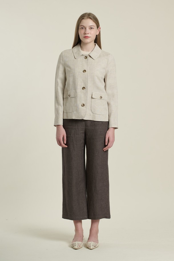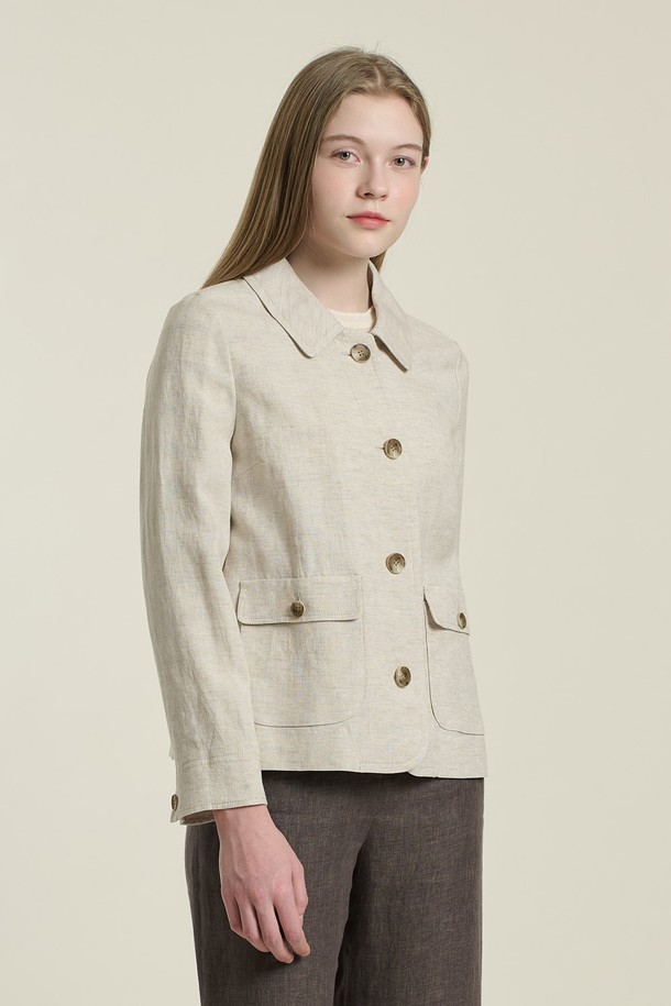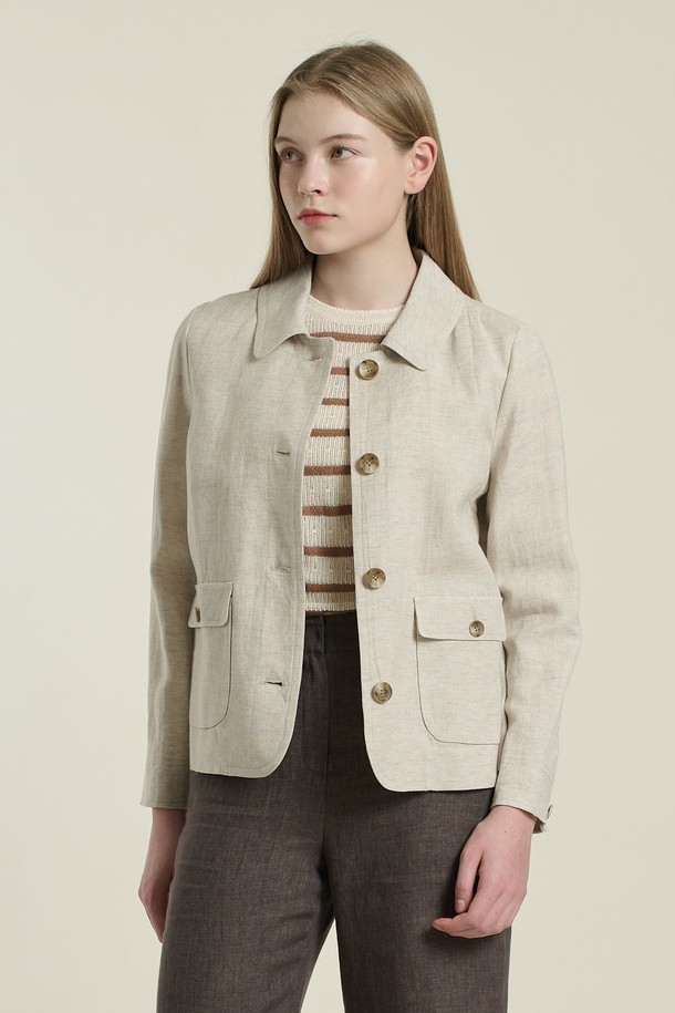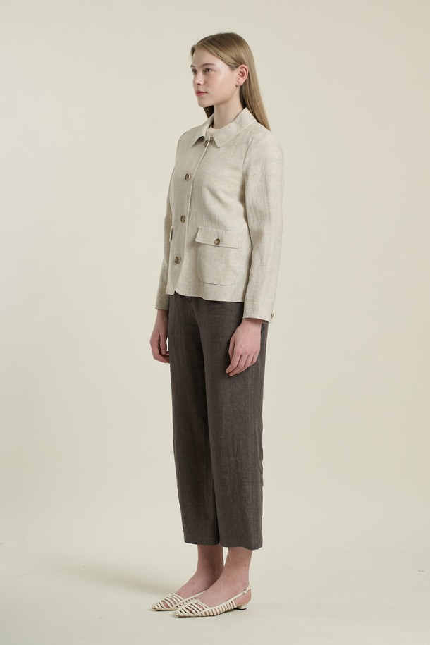 [26SU] 스탠카라 크롭린넨 자켓 - OATMEAL B6B3J10877