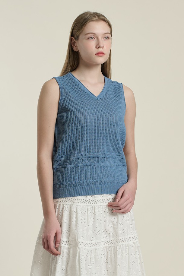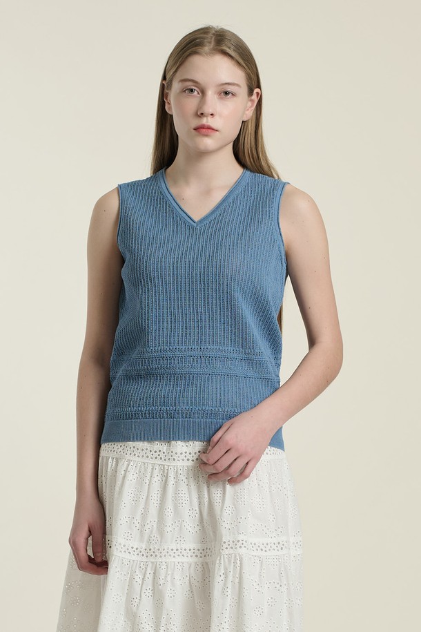 [26SU] 크로셰 트윈 V넥 풀오버 - M BLUE B6B4K31753