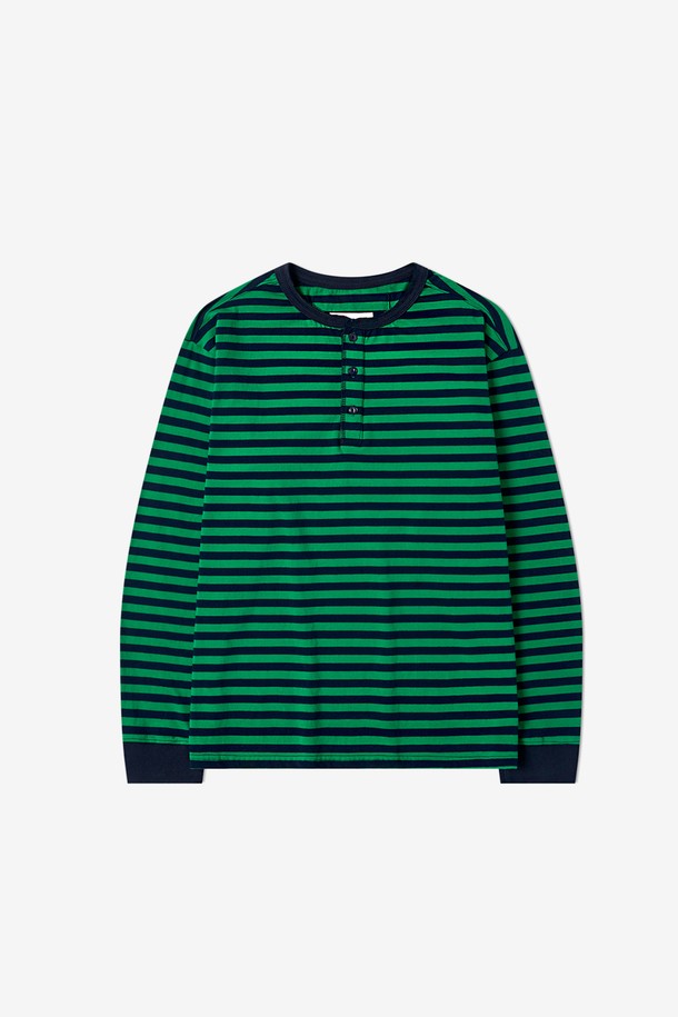 French Marine Stripe Henley T-Shirt (Green/Navy)