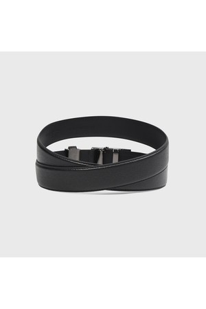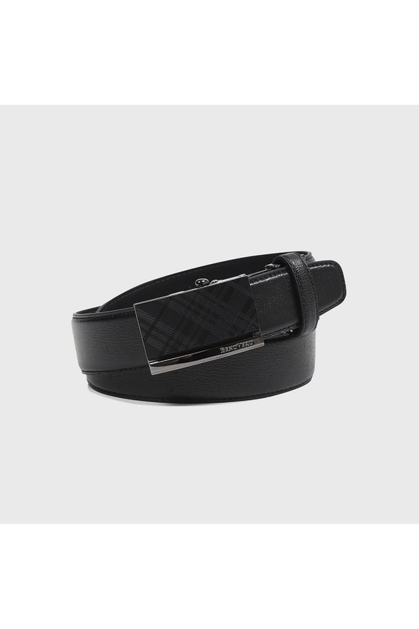 더비엠보 소가죽 체크 스퀘어 흑유광 자동벨트 블랙