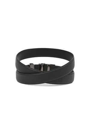 더비엠보 소가죽 흑유광 로고패턴 자동벨트 BLACK