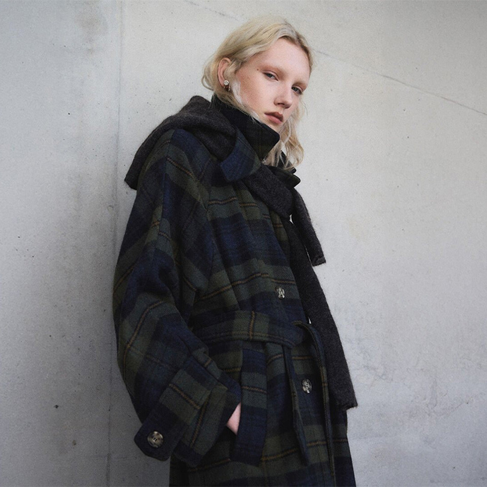 [25FW] 빔바이롤라 다크카키 울 A라인 체크 스커트 B256AWS005KAA