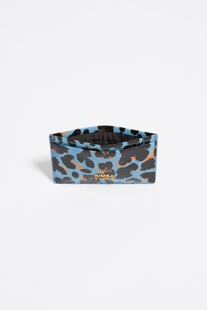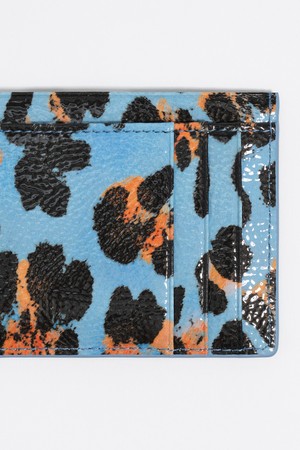 [25FW] 파스텔 블루 텍텍스처드 샤이니 레오파드 프린트 카드 지갑 B256AIV010BLF