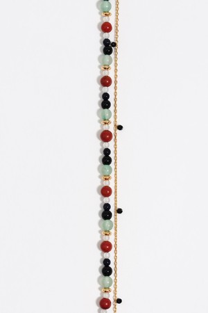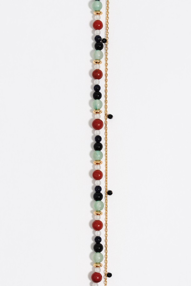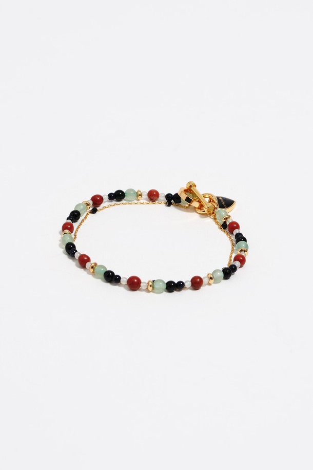 [25FW] 골드 더블 레이어드 하트 로고 체인 스톤 브레이슬릿 B256AIX002BKF