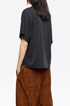 [25FW] 워시드블랙 스터드 숄더 티셔츠 B256AWT002BKB