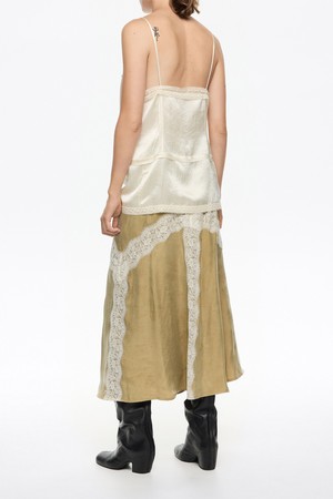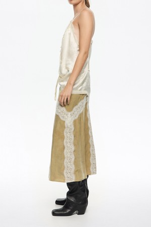 [25FW] 라이트카키 콘트라스트 레이스 A라인 스커트 B256AWS009LKA