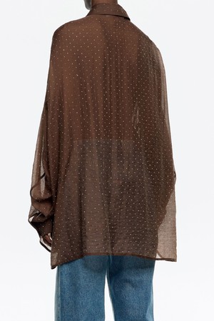 [25FW] 다크브라운 미니 라인스톤 오버사이즈 셔츠 B256AWB003DWB