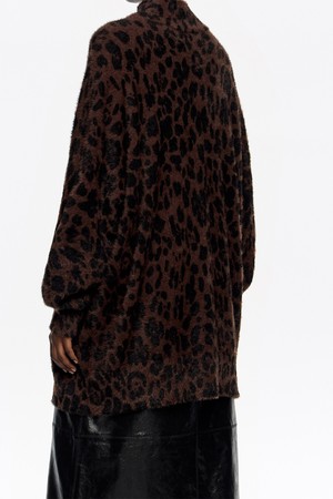 [25FW] 다크브라운 레오파드 빅 퍼 하이넥 스웨터 B256AWK017BRB