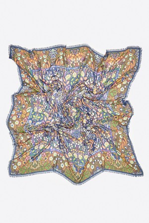 [25FW] 네이비 플라워 & 로고 보더 스카프 B256AII014NYF