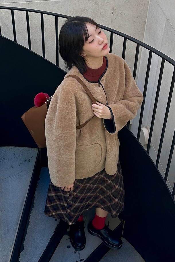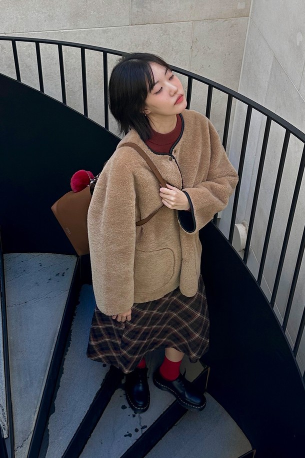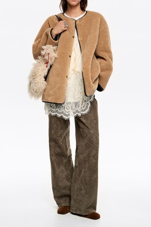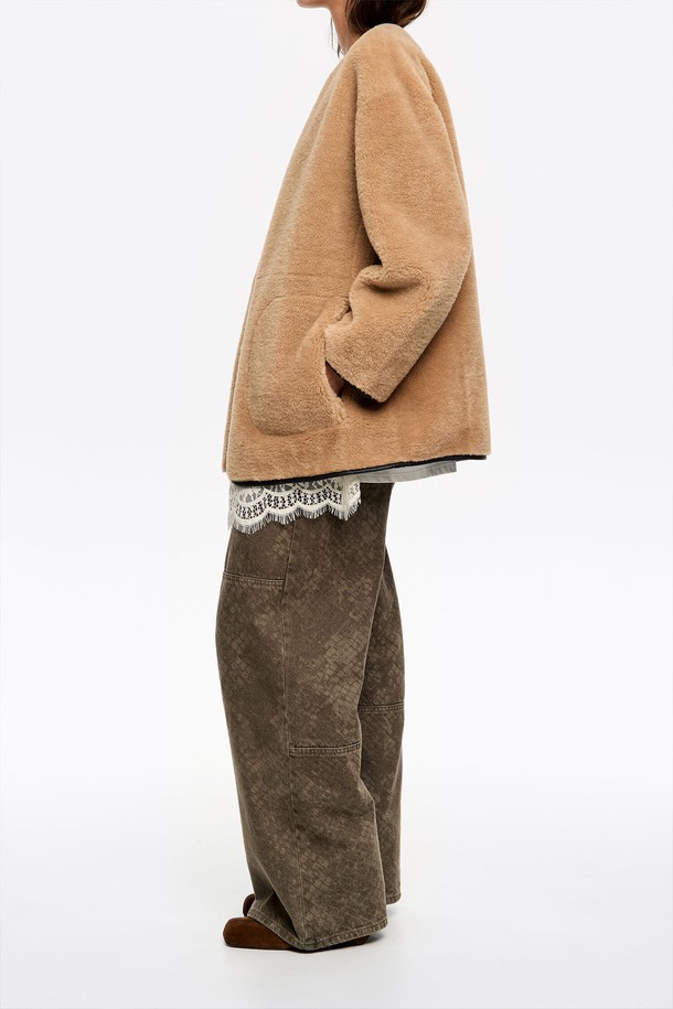 [25FW] 빔바이롤라 카멜 크루넥라인 리버서블 퍼 코트 B256AWM002CMB