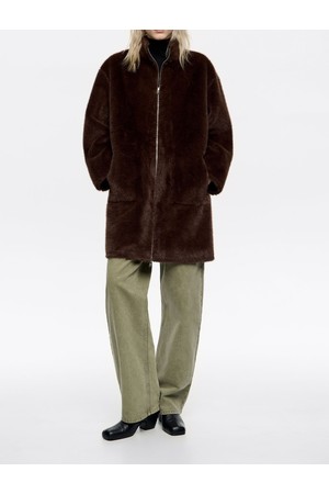 [25FW] 빔바이롤라 다크 브라운 오버사이즈 리버서블 퍼 코트 B256AWM003DWB