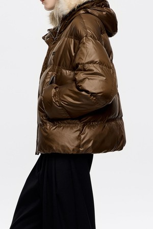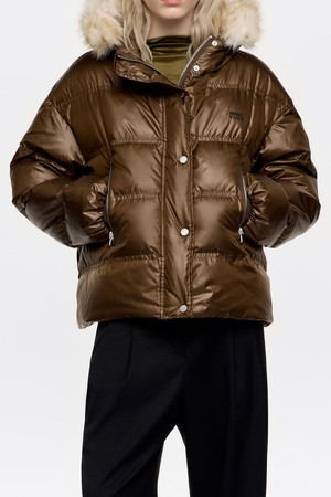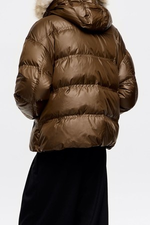 [25FW] 다크카키 퍼 후드 숏 다운 재킷 B256AWD008OLB