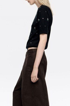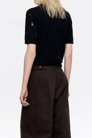 [25FW] 블랙 라인스톤 반팔 스웨터 B256AWK011BKB