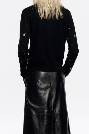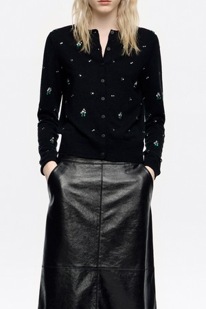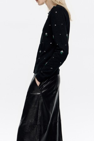 [25FW] 블랙 핏 라인스톤 가디건 B256AWG004BKB