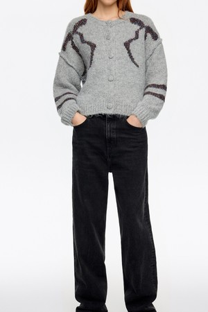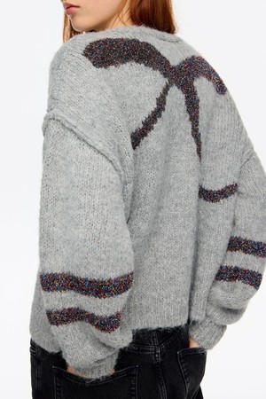 [25FW] 라이트그레이 틴셀 벌룬 가디건 B256AWG001GRB