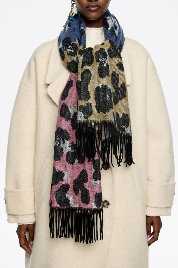 [25FW] 빔바이롤라 믹스 컬러 애니멀 프린트 아크릴 자카드 숄 B256AII009NYF