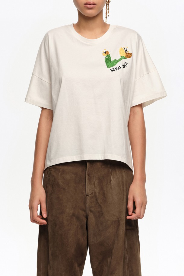 [26SS] 빔바이롤라 자수 로고 티셔츠 - 아이보리 B265AWT005IVB