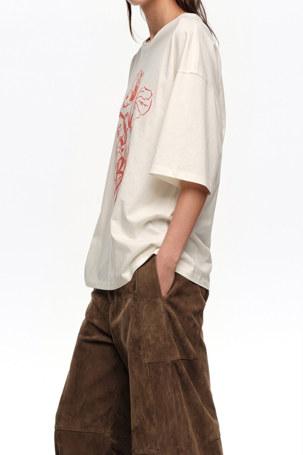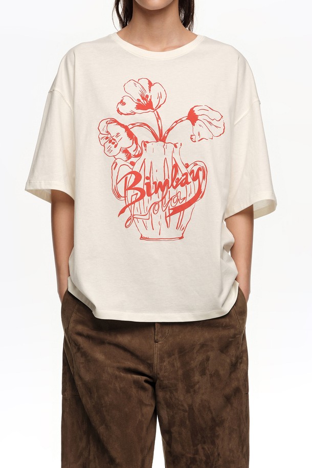[26SS] 빔바이롤라 엠보싱 플로럴 로고 티셔츠 - 화이트 B265AWT022WHB