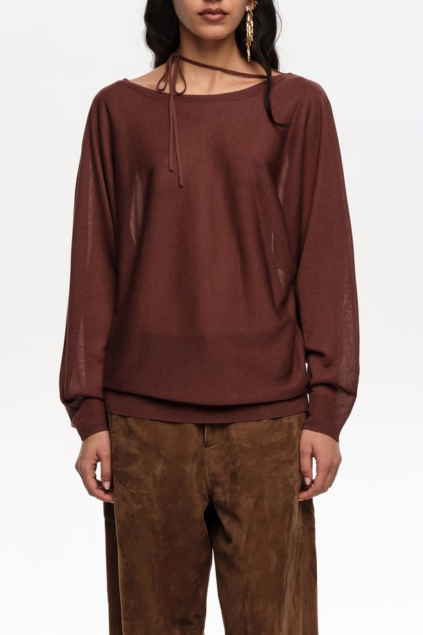 [26SS] 빔바이롤라 보트넥 크로스오버 타이 스웨터 - 브라운 B265AWK008BRB