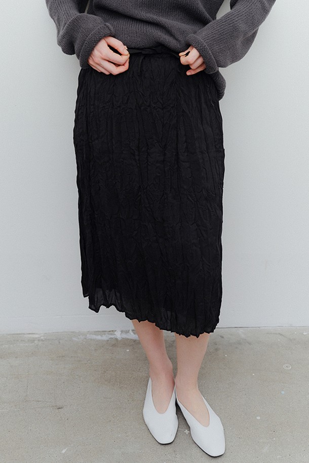 wrinkled viscose midi skirt (black)