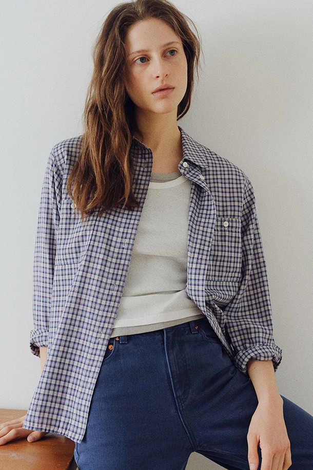 washed cotton check shirt [Italian fabric] (blue check)