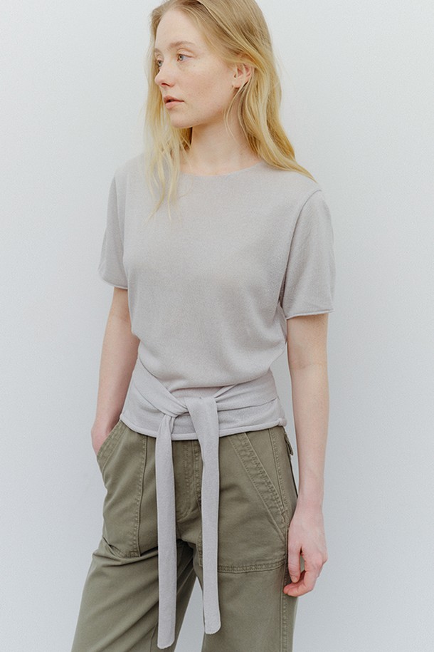 linen blend tie pullover (light grey)