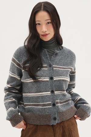 [BLOND9 X ITER]멀티 스트라이프 니트 가디건_차콜