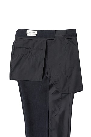 마이크로 네이비 슬림 슈트 팬츠