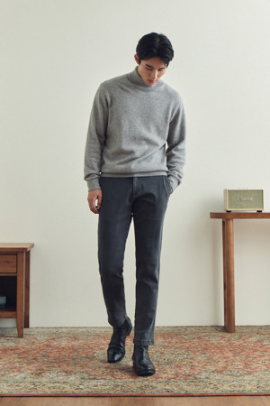 라쿤 혼방 솔리드 롱터틀넥 스웨터