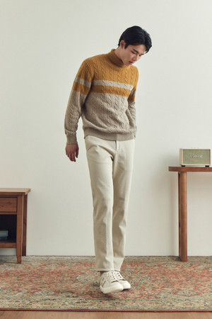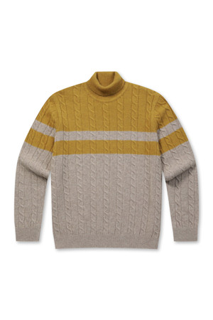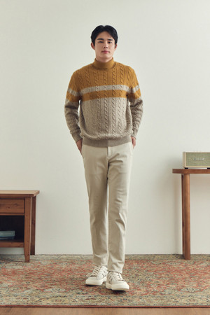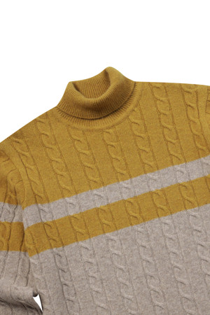 [셀렉션] 라쿤 혼방 블록 롱터틀넥 스웨터
