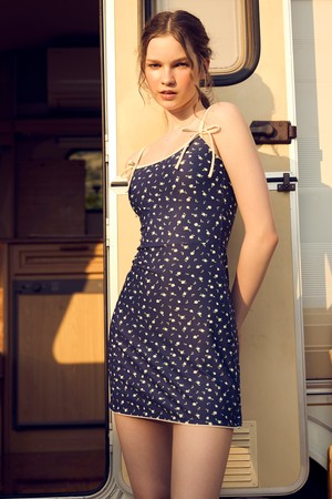 캐미 크림로즈 바인딩 리본 원피스수영복