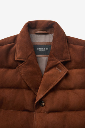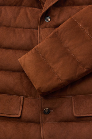 램 스웨이드 후드 드라이빙 구스 다운 자켓