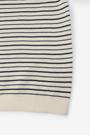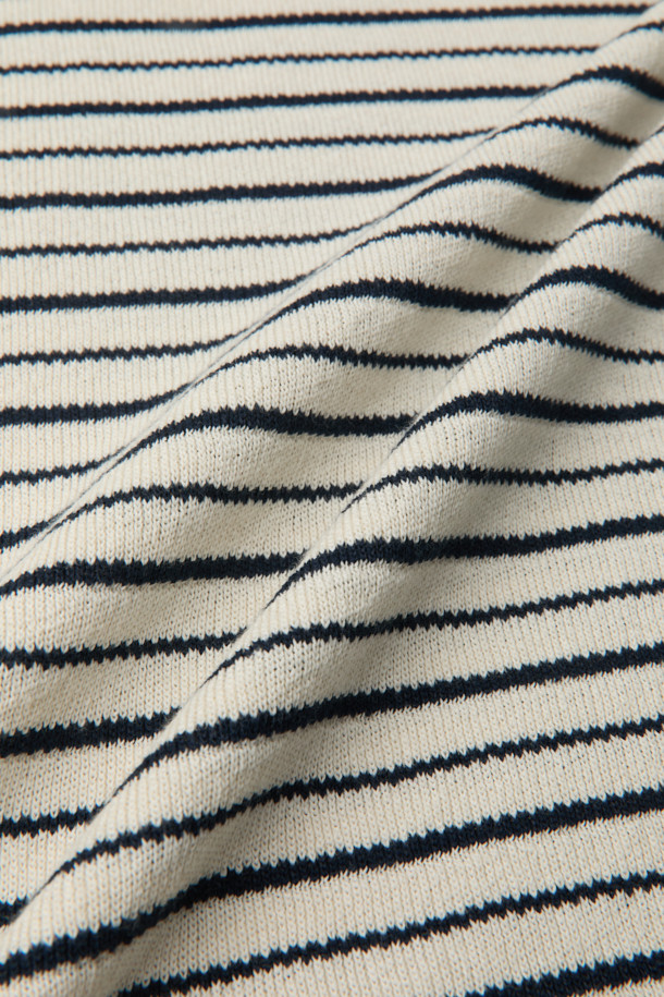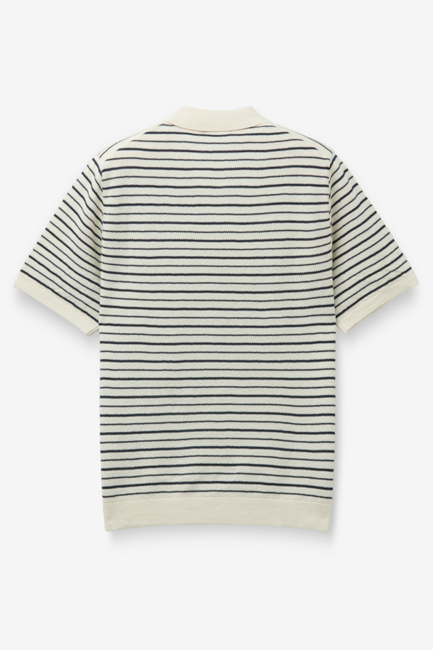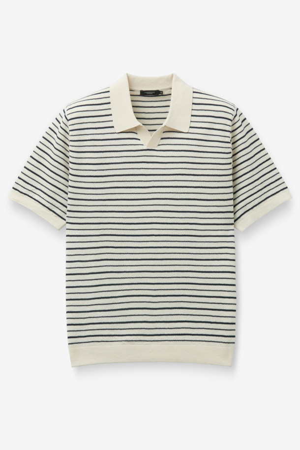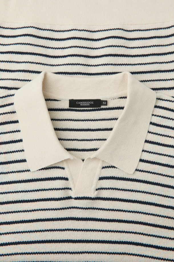 한지 코튼 스트라이프 오픈 카라넥 니트