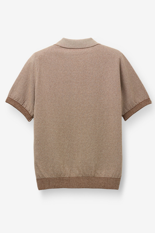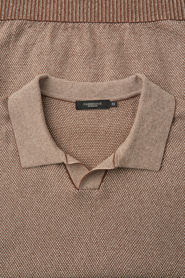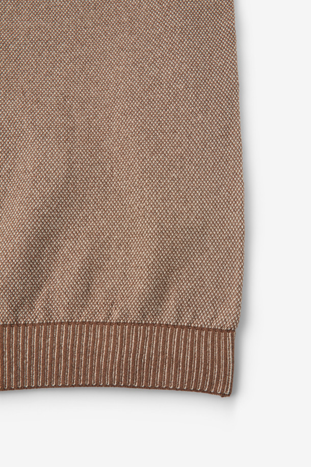 한지 코튼 투톤 오픈 카라넥 니트 - 오렌지