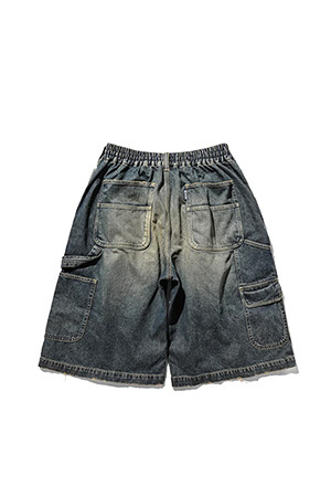 (CLESSTE) VINTAGE DYED SELVEDGE DENIM WORKER HALF PANTS - VINTAGE INDIGO