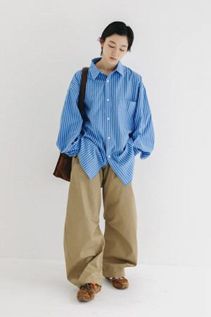 (CLESSTE) 46G KNIT EVERYDAY L/S SHIRT - SAX BLUE STRIPE