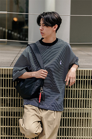 (CLESSTE) "C"STRIPED MASSIVE T-SHIRT WITH DRAWSTRINGS - BLACK X WHITE