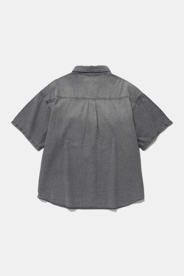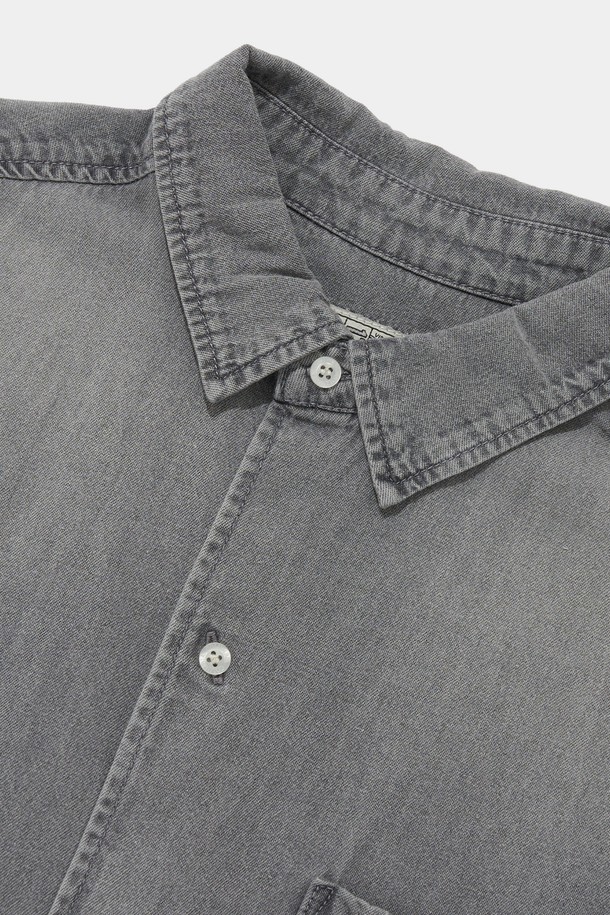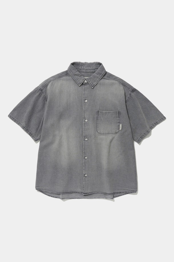 SPRAY WASHED ONE POCKET DENIM S/S SHIRTS_GRAY JEAN