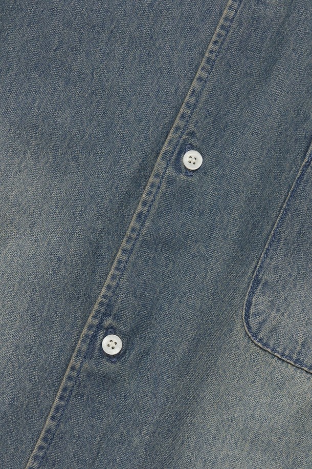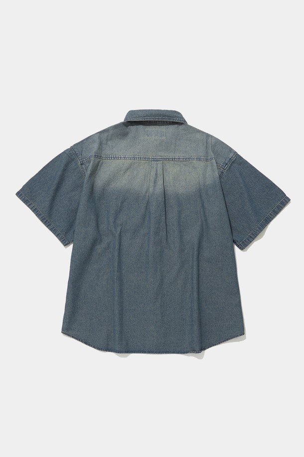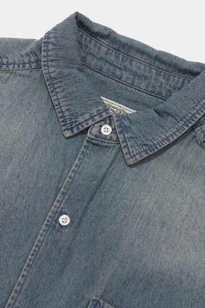 SPRAY WASHED ONE POCKET DENIM S/S SHIRTS_LIGHT JEAN