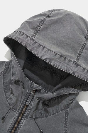 URBAN WASHED WOOVEN ZIP-UP JACKET_CHARCOAL