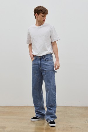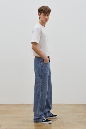 DENIM DOUBLE KNEE CARPENTER WIDE PANTS M BLUE C5