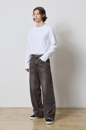DENIM SIDE POINT LINE WIDE PANTS BROWN K5