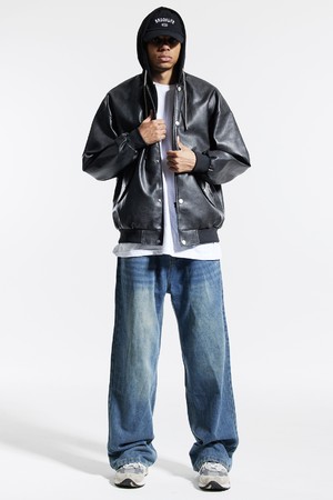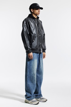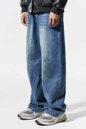 씨알에스디엘 베이직 워싱 와이드 밴딩 데님 팬츠