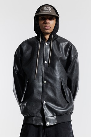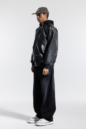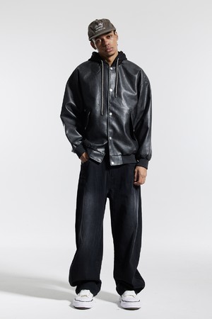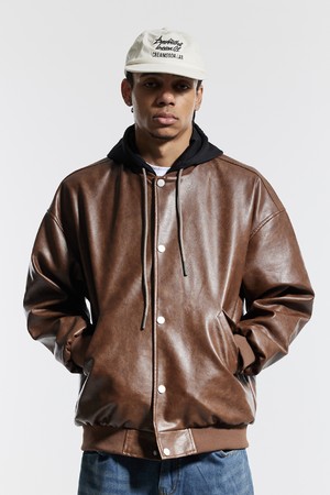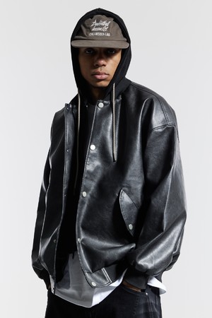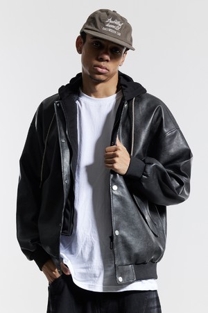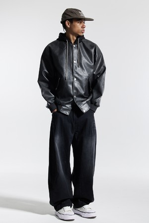 씨알에스디엘 내츄럴 워시드 비건 레더 후드 자켓
