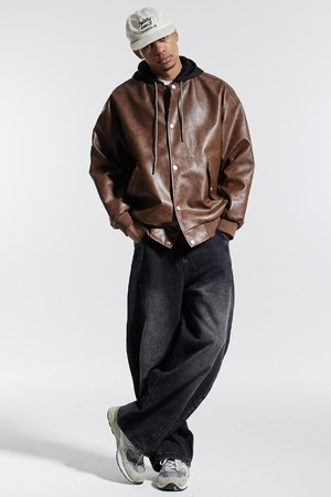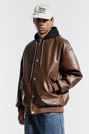 씨알에스디엘 내츄럴 워시드 비건 레더 후드 자켓