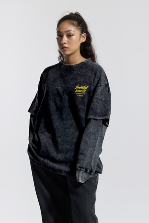 씨알에스디엘 쿼터 팀플레이 피그먼트 페이크 이중 레이어드 롱슬리브 블랙 옐로우