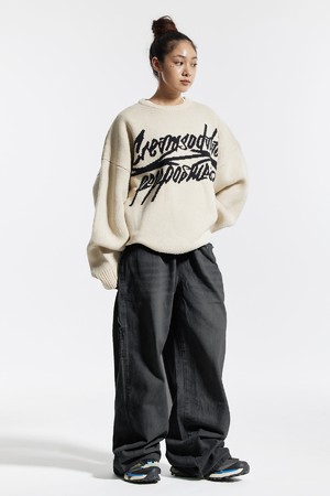 씨알에스디엘 빅 그래픽 자카드 니트 맨투맨