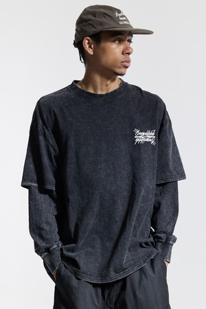 씨알에스디엘 레터링 피그먼트 페이크 이중 레이어드 롱슬리브